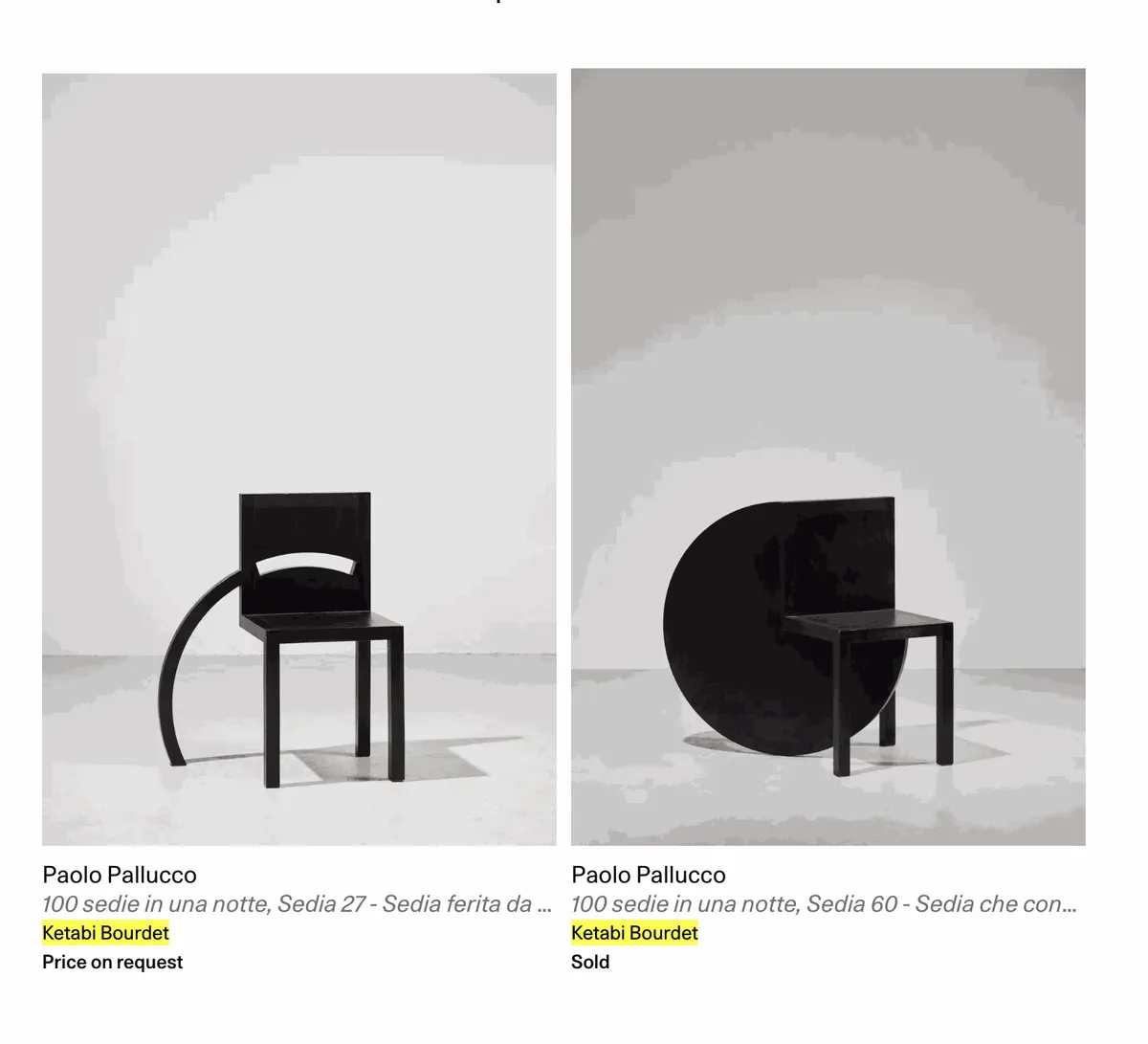 Ketabi Projects - 22, passage Dauphine, 75006 Paris 3 - 20 March 2022Né à Rome en 1950 et architecte de formation, Paolo Pallucco est sans conteste l'un des designers les plus radicaux et engagés des années 80, tant par les pièces qu'il...Read more